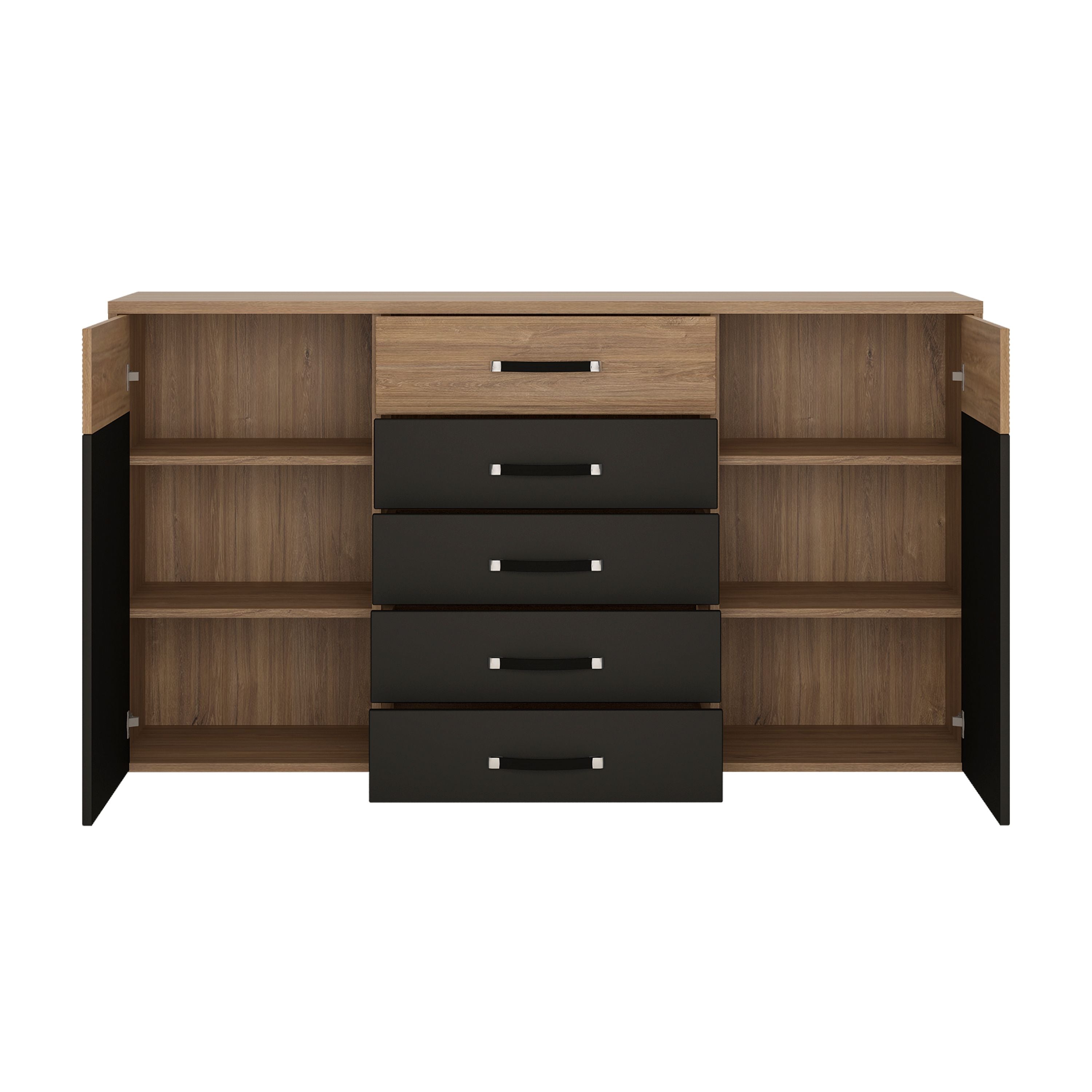 Chest of drawers, which can be used free-standing but also inside either of the Harding wardrobes. Whether you prefer the modern or industrial design, the Monaco collection steals the heart of those who love the simple yet elegant high-class interior. A beautiful and clever combination of Stirling oak with matte black fronts – simply a great collection to make a dreamy bedroom.