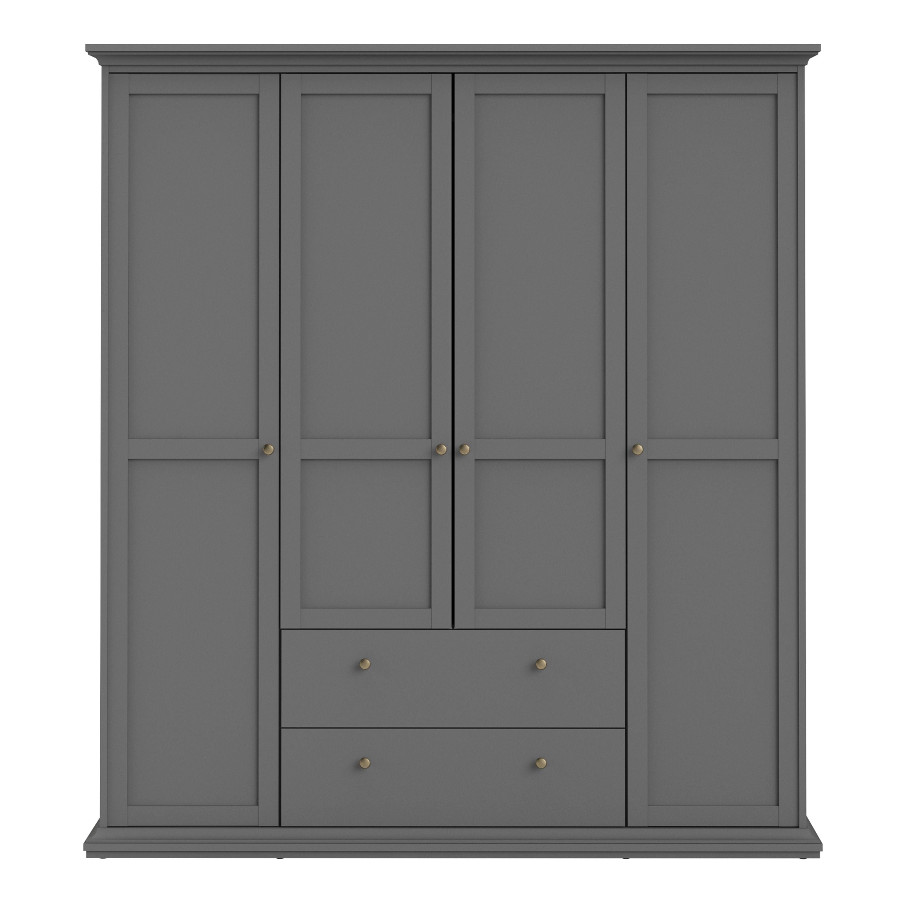 Westchester Wardrobe with 4 Doors and 2 Drawers In Matt Grey