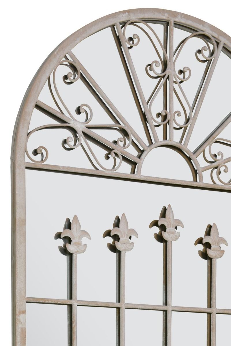 fabulous large Gothic designed Stone Coloured garden wall mirror. This mirror has an arched top and a classic Gothic look to it the frame itself has a rustic effect and is also frost protected to withstand all weathers.