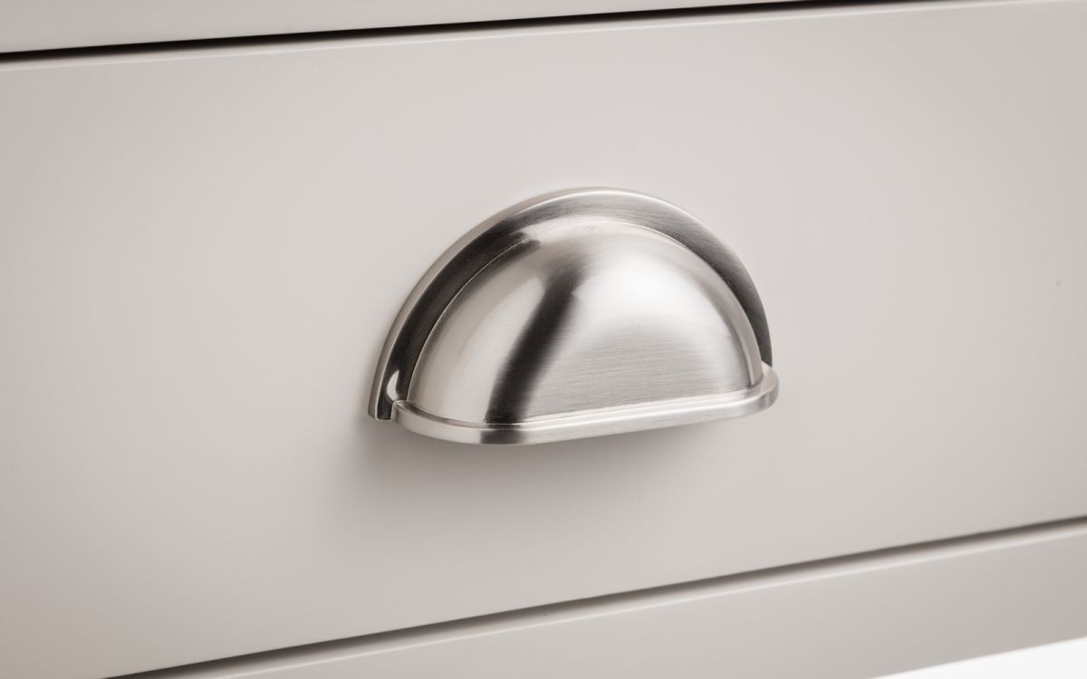 An elegant Sideboard, presented in an immaculate painted, soft Elephant Grey finish with beautiful pale oak top, crafted from a combination of high grade American White Oak solids and veneers. This stylish piece looks beautiful and offers phenomenal storage for kitchen, living or dining room. Includes three practical drawers above a double and single cupboard space, accented with chic cupped handles in a brushed steel finish; ideal for cutlery, crockery and glassware. The combination of superior quality materials and classic design ensures a timeless appeal and fits perfectly alongside both traditional and contemporary decor. Part of the extensive Richmond Dining and Occasional furniture range from Julian Bowen.