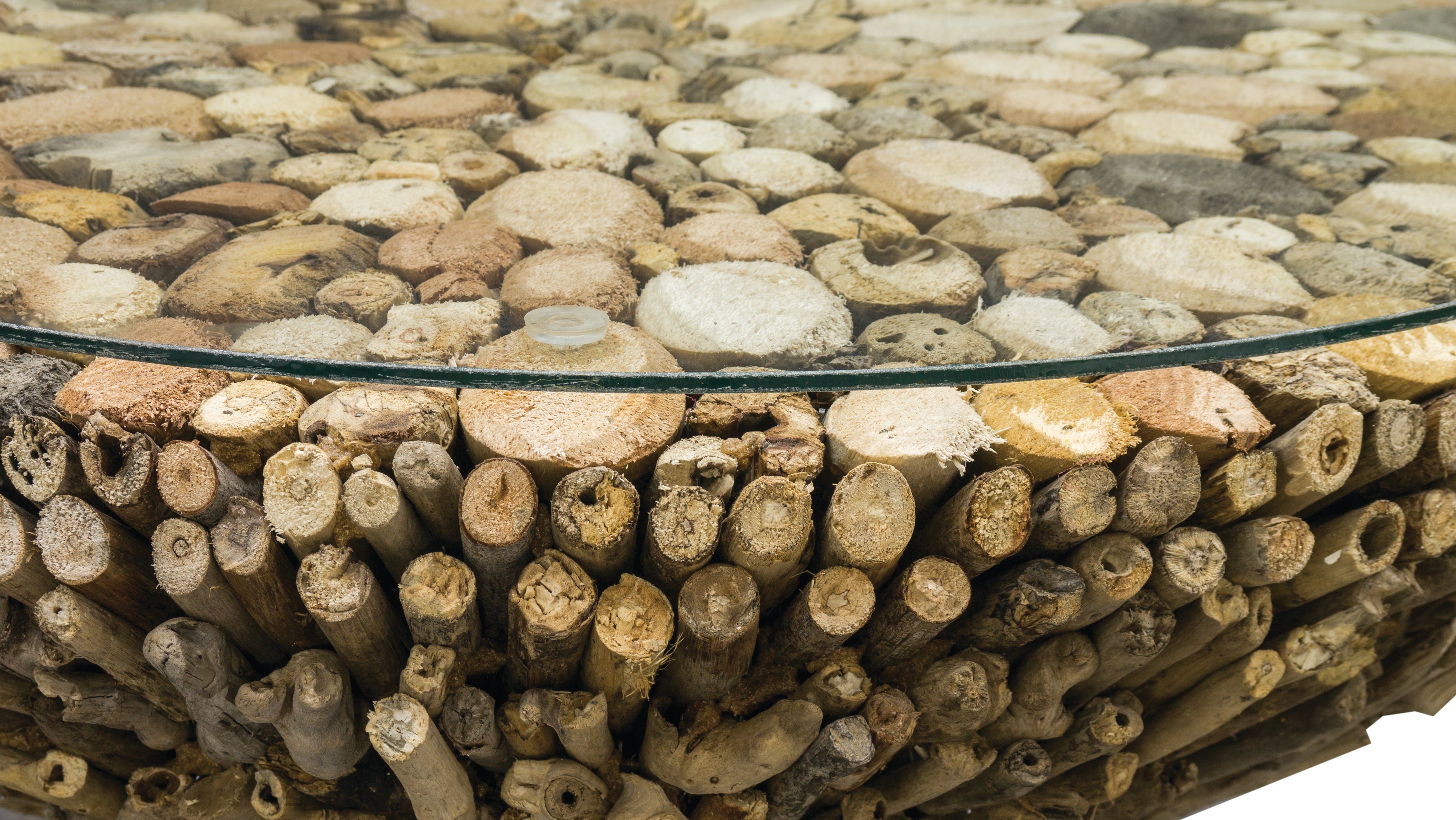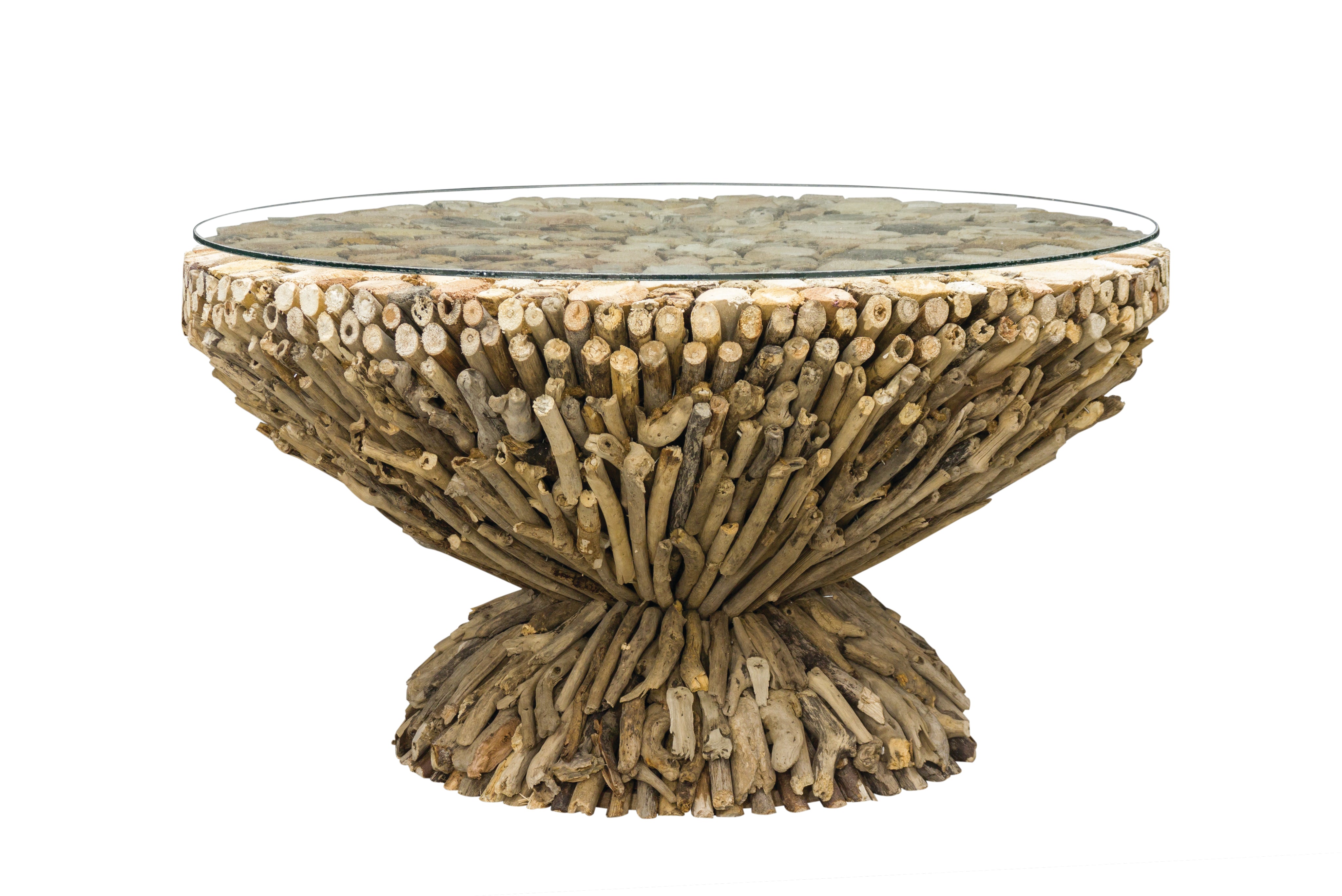 Bodiam Raby Driftwood Round Coffee Table w Glass Top