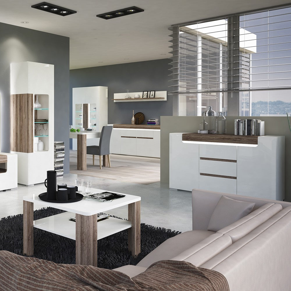 Bronxdale 3 Door 1 Drawer Sideboard (inc. Plexi Lighting) 160 cm Dining Table + 4 Milan High Back Chair White